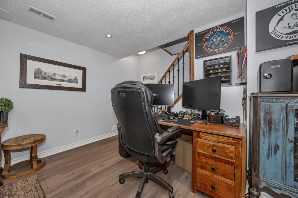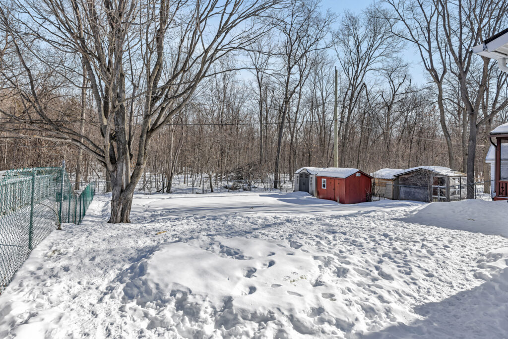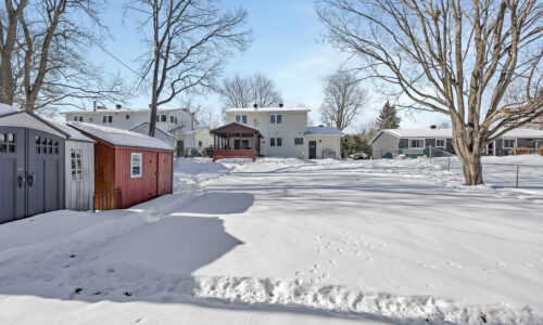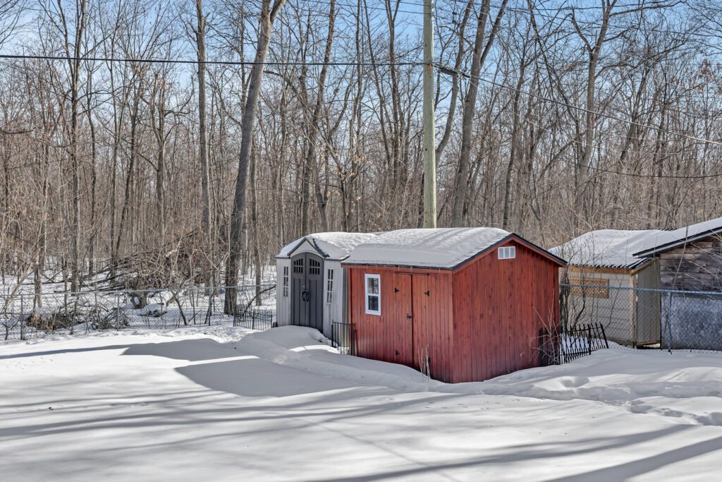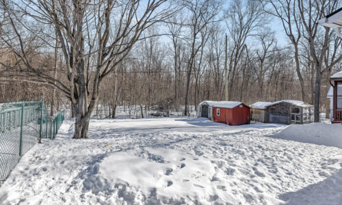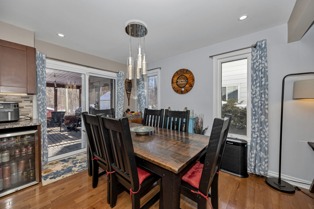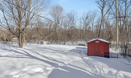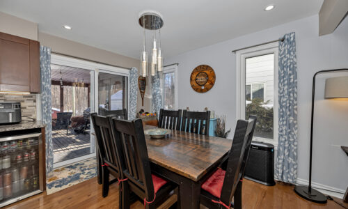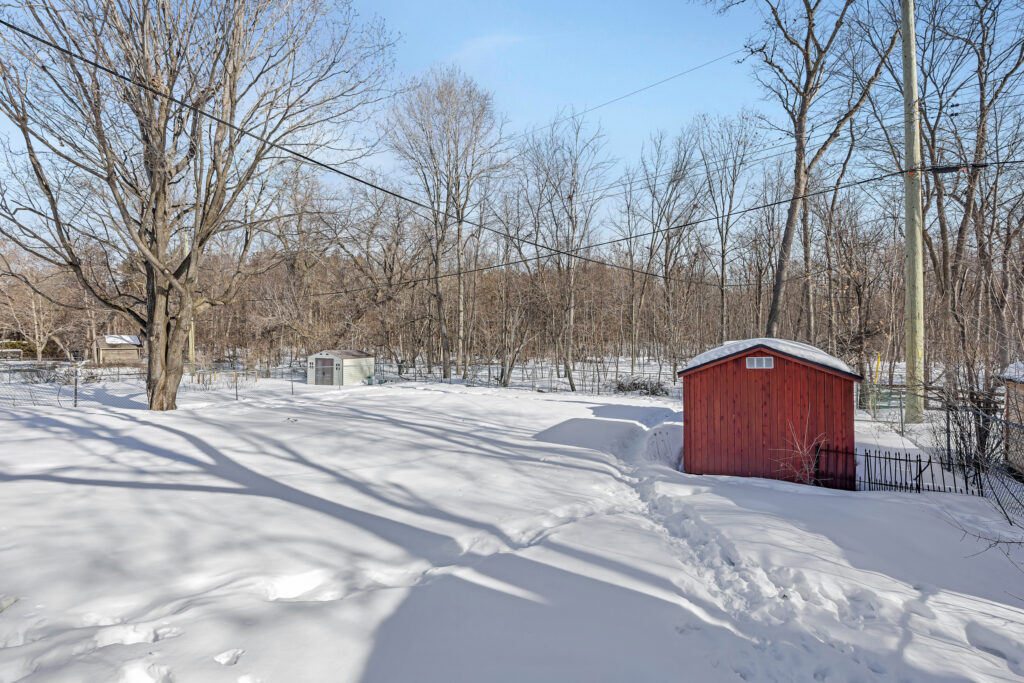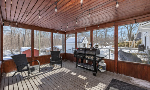 From the dining room, step out to the upgraded 3-season deck (2021) overlooking the fully fenced, private backyard featuring two outdoor sheds and no rear neighbours.