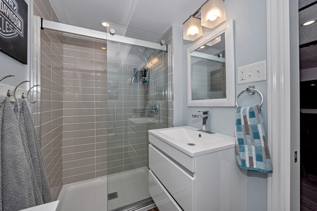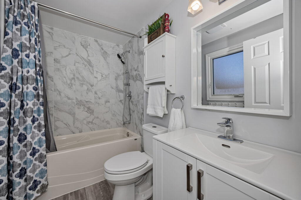 The fully renovated basement (2018) provides additional living space and includes a modern 3-piece bathroom with a walk-in shower.