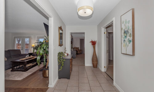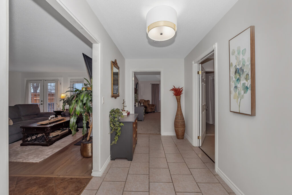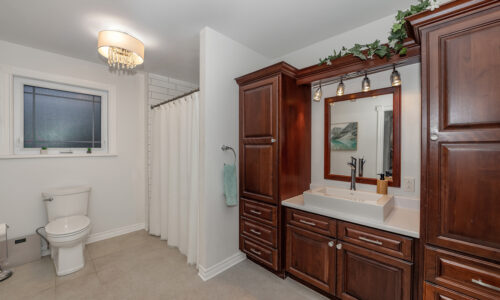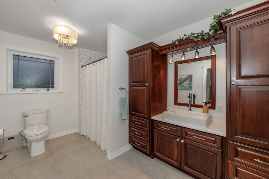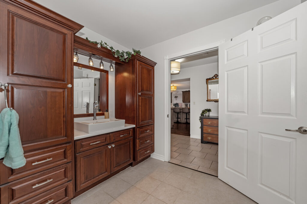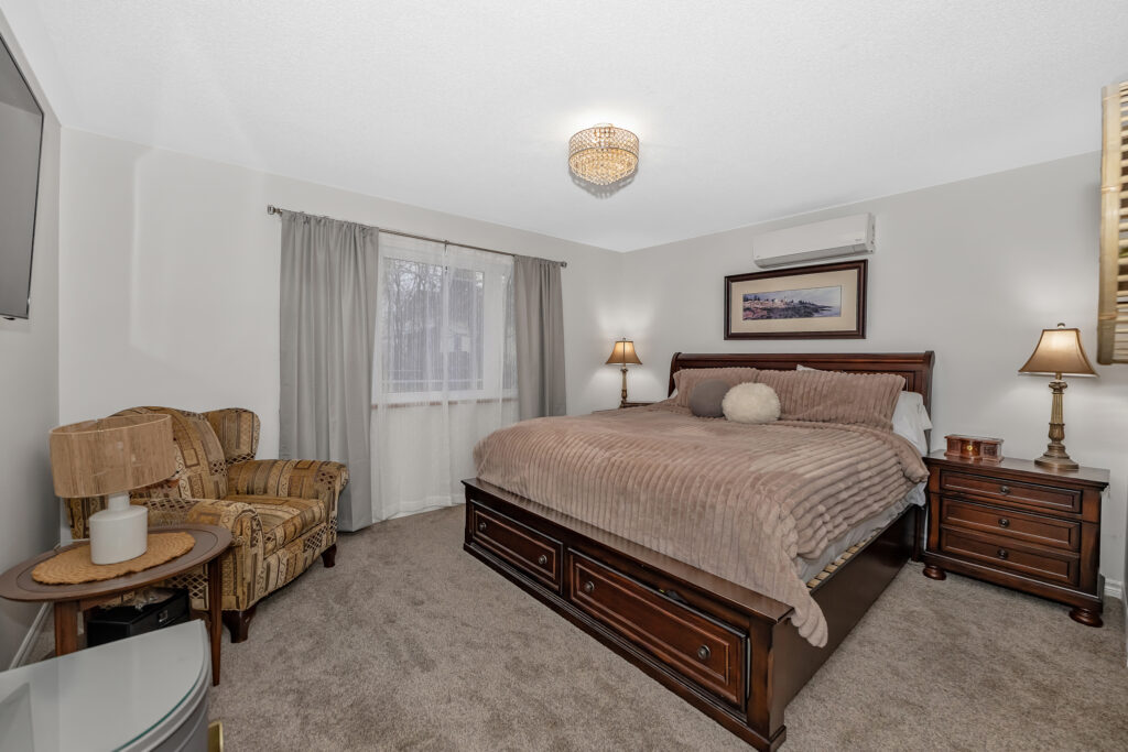 The primary bedroom features both a walk-in closet and a second closet, along with a cheater ensuite to the updated full bathroom, which includes a new tub, tile, flooring, and solid wood cabinetry. Two additional spacious bedrooms complete the interior layout.