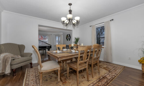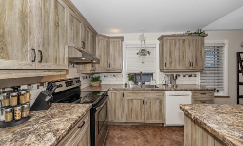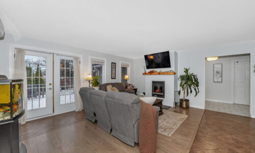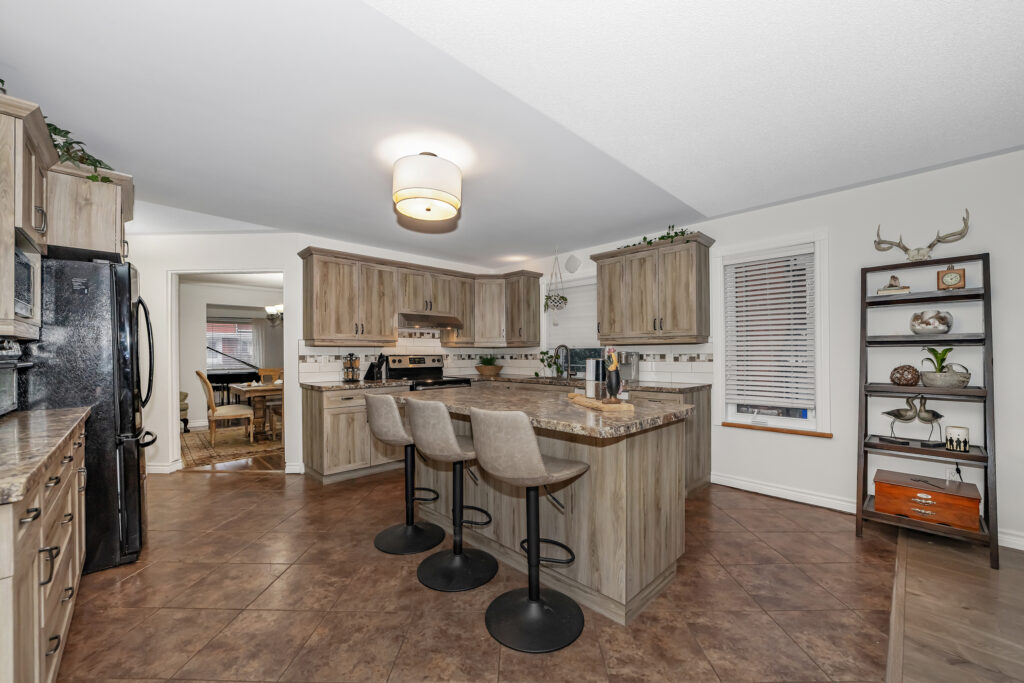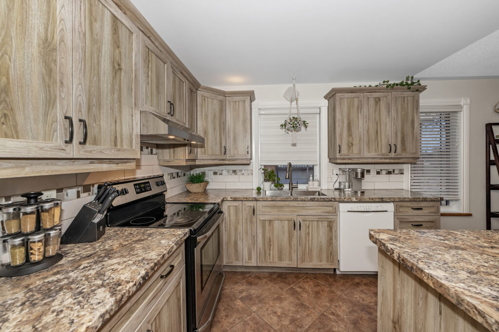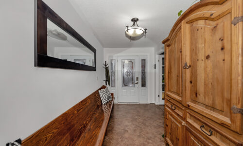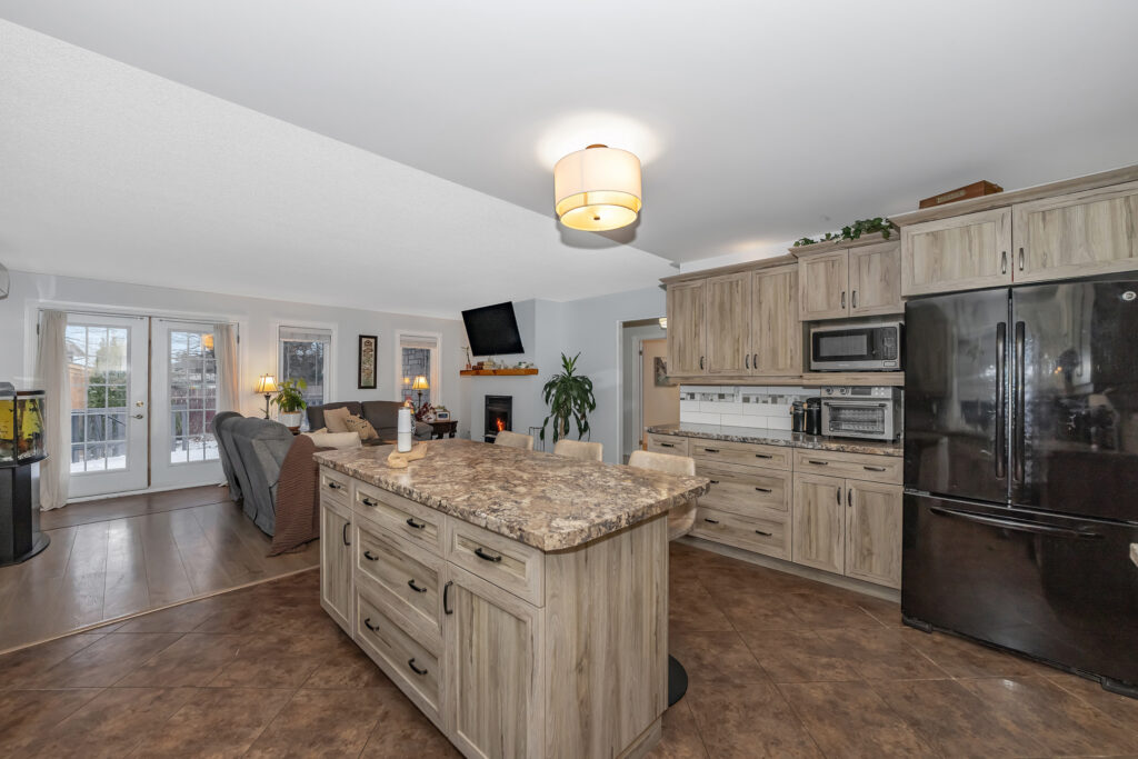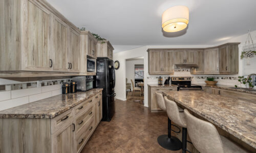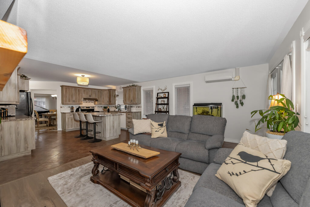 Inside, enjoy one-level living with heated floors throughout and a bright, airy layout filled with natural light. The spacious foyer opens to an expansive kitchen with a large center island, double sink, and abundant cabinet and counter space. The kitchen overlooks the inviting living room, highlighted by a WETT-certified wood-burning fireplace-ideal for cozy family nights.The dining area, located just off the kitchen, flows seamlessly creating a perfect setting for gatherings and entertaining.